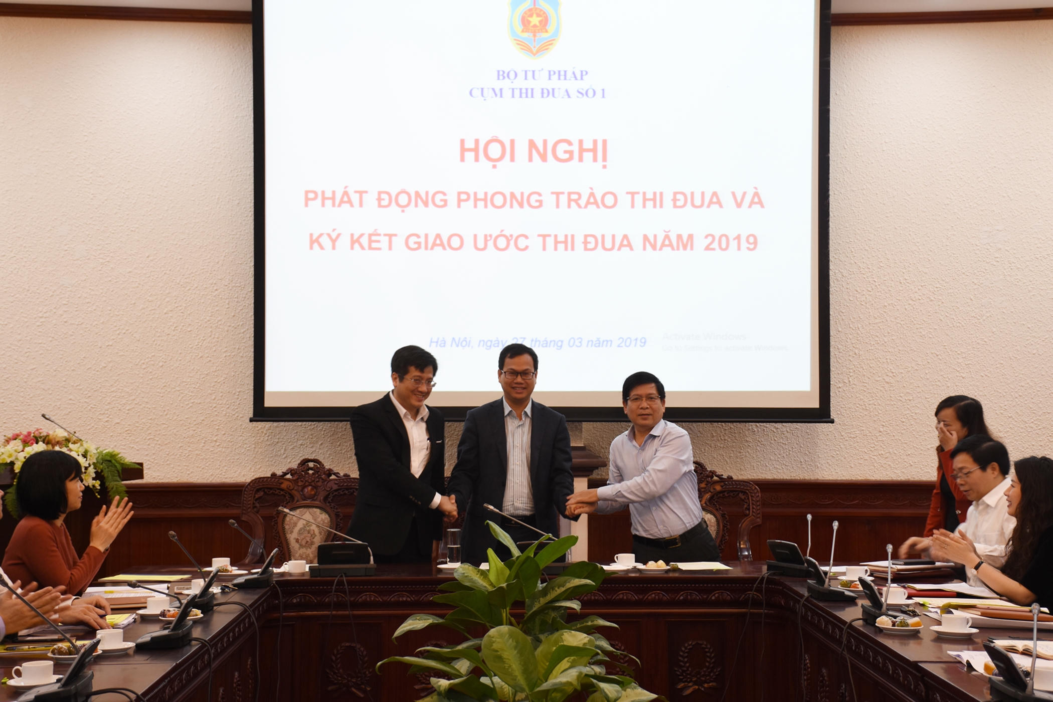(PLVN) - Sáng 27/3, tại Bộ Tư pháp đã diễn ra Hội nghị phát động phong trào thi đua và ký kết giao ước thi đua năm 2019 của Cụm thi đua số I. Thứ trưởng Nguyễn Khánh Ngọc đã dự và chỉ đạo Hội nghị.