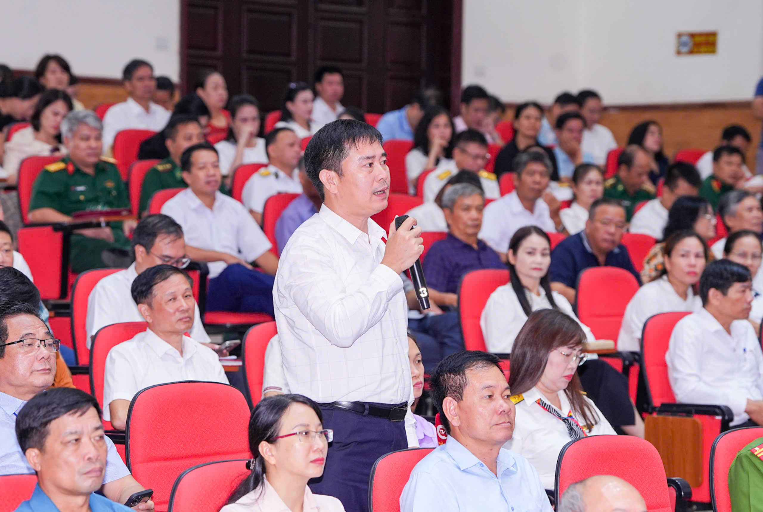 Cử tri quận Hải An phát biểu ý kiến tại cuộc tiếp xúc. |