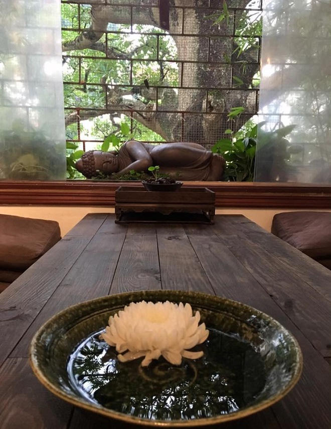 Giờ thì tôi đã hiểu tại sao Ngọa Vân Am lại chỉ kê có vỏn vẹn bốn bàn, không gian còn lại nhường chỗ cho những chén trà gốm, tượng Phật và hoa mùa nào thức ấy. Và cũng hiểu tại sao mỗi khi khách đến, Sen lại khe khẽ đặt lên bàn quyển số trong đó ghi những loại trà cùng dòng lưu ý: “Không chụp ảnh, đi nhẹ, nói khẽ, cười duyên” (tuy nhiên, với nhà báo thì có thể có ngoại lệ - PV).