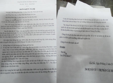 Phía người dân tổ 7, Phúc Diễn cũng đã gửi đơn kiến nghị lên các cấp để trình bày và yêu cầu giải quyết những thắc mắc mà họ đưa ra. Trước đó ngày 6/12, sau khi nhận được đơn kiến nghị của người dân nơi đây, UBND thị trấn đã tiếp xúc cử tri, nhưng vấn đề vẫn chưa giải quyết. Ngày 9/12, người dân lại tiếp tục viết đơn kiến nghị, tập hợp 210 chữ ký của người dân tại tổ 7 gửi lên 4 cấp: HĐND UBND thị trấn Cầu Diễn; HĐND UBND huyện Từ Liêm; UBND Tp Hà Nội; Bí thư Tp Hà Nội ông Phạm Quang Nghị.