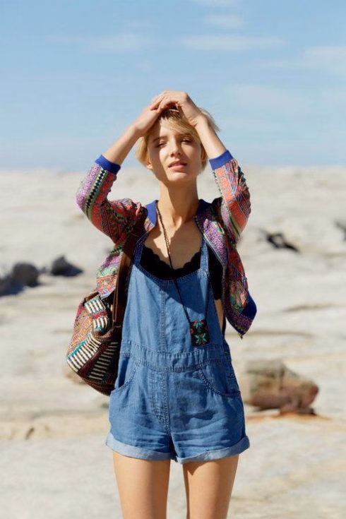 Vào những ngày Hè nóng nực, yếm short jeans phối cùng áo croptop, thêm một đôi giày thể thao và chiếc kính mát sành điệu, bạn đã có thể vô tư dạo phố với vẻ ngoài thoải mái, đầy cuốn hút.