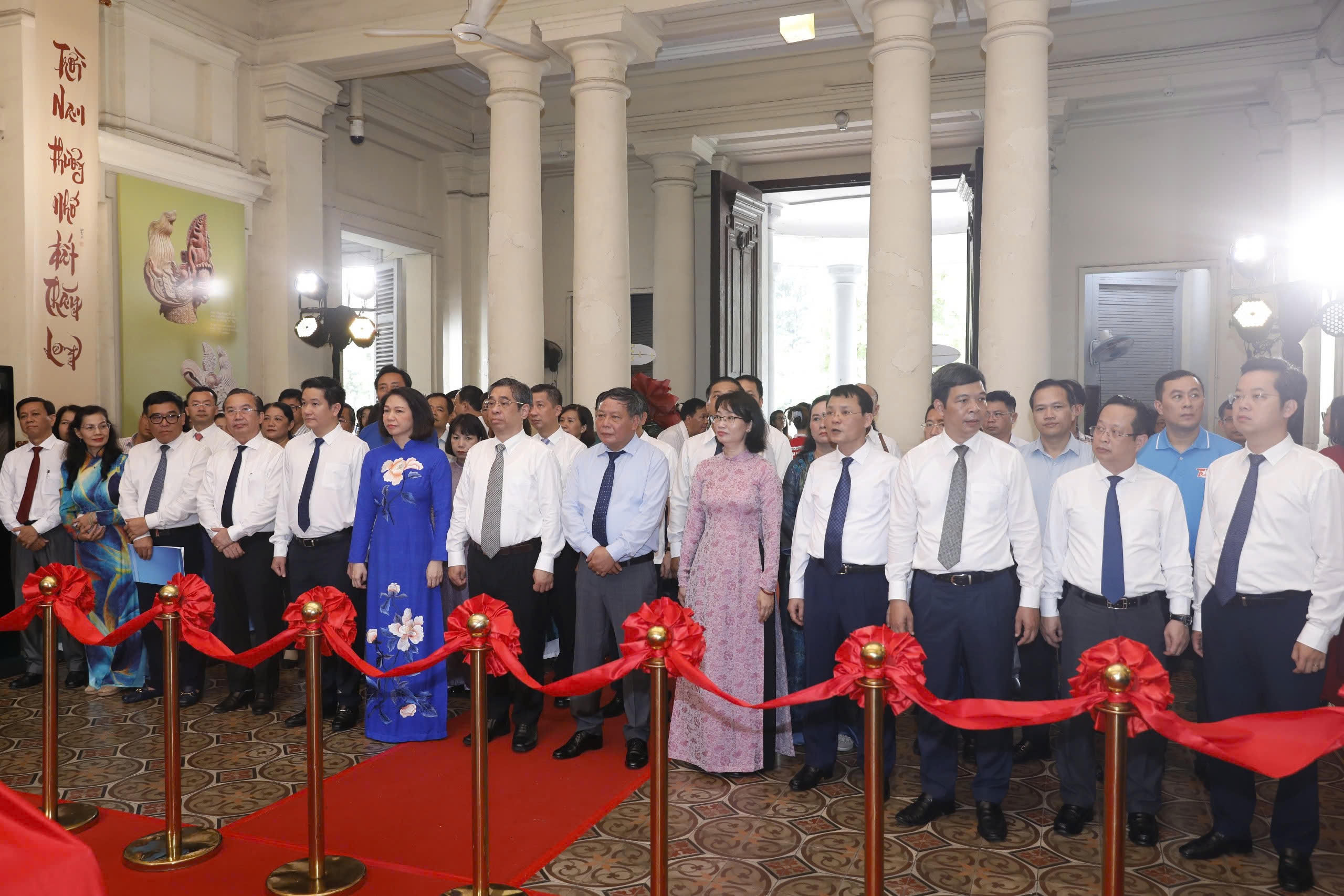 Đại biểu lãnh đạo TP Hà Nội và TP HCM tham dự khai mạc trưng bày. |