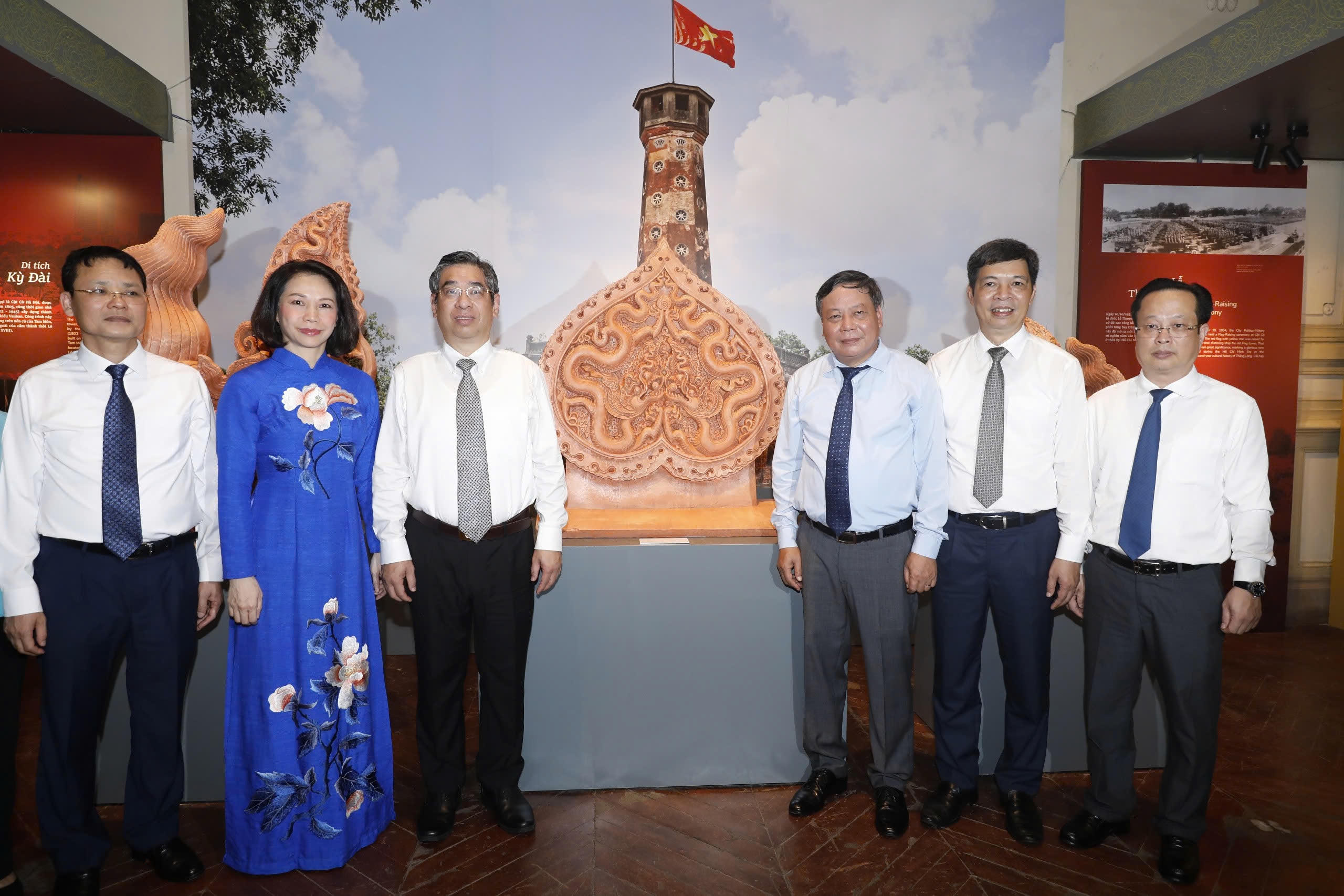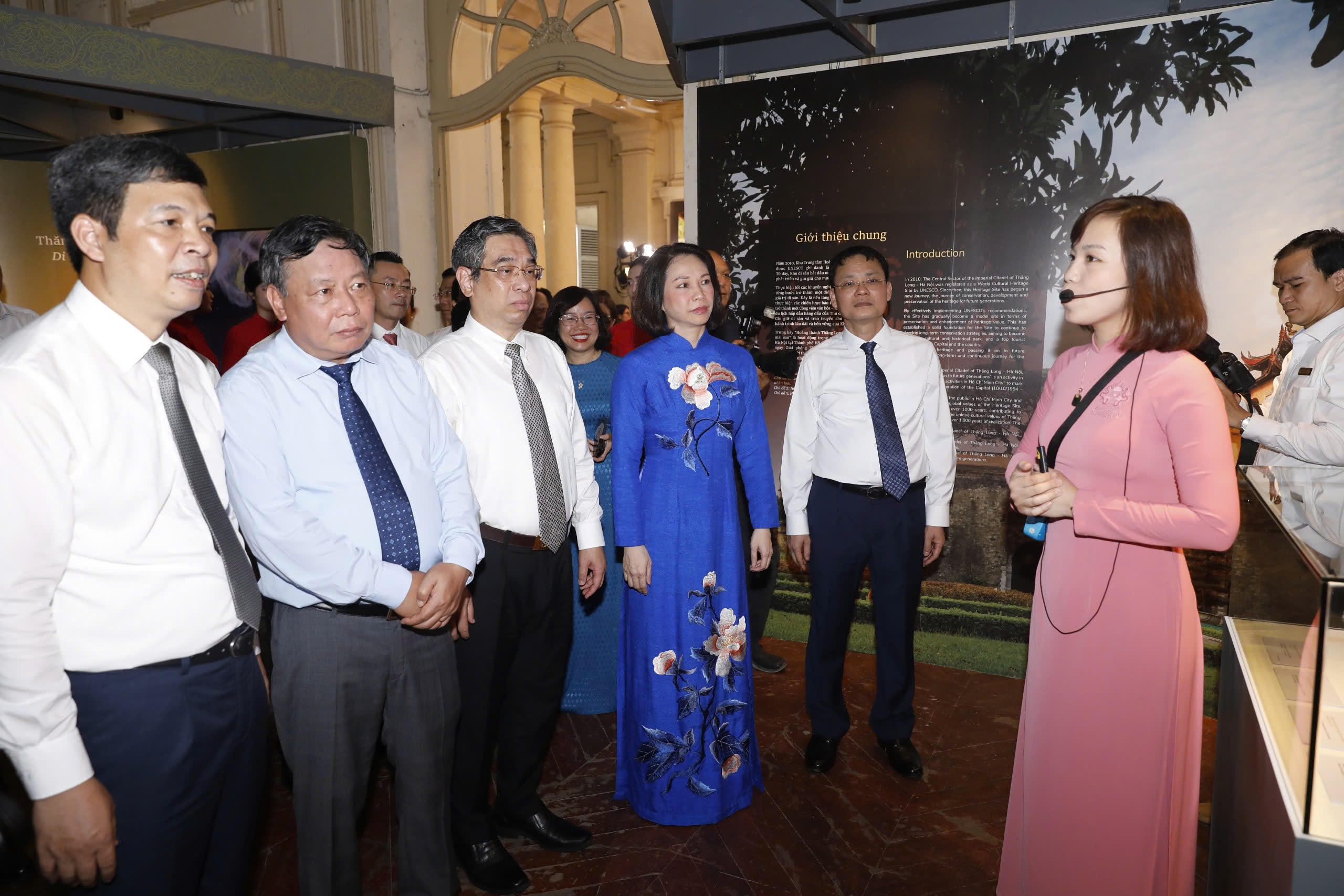 Lãnh đạo TP Hà Nội và TP HCM tham quan khu trưng bày chuyên đề "Hoàng thành Thăng Long - Hà Nội, di sản cho mai sau". |