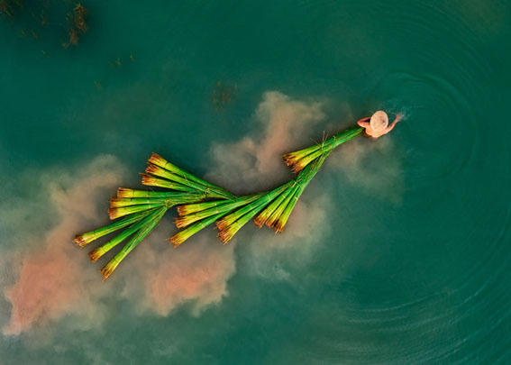 Tác phẩm Thu hoạch cỏ bàng của nhiếp ảnh gia Nguyễn Hữu Bính đoạt giải nhất cuộc thi quốc tế. |