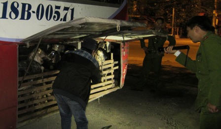 Khoảng 20h45' tối 27/2, tại đường Quang Trung, đoạn trước Quảng Bình Quan, thuộc địa phận phường Hải Đình, TP. Đồng Hới (Quảng Bình), lực lượng tuần tra liên ngành của Đội Cảnh sát Trật tự, Phòng Cảnh sát Quản lý hành chính về trật tự xã hội - Công an tỉnh Quảng Bình cùng Thanh tra Giao thông tỉnh này khi làm nhiệm vụ đã phát hiện xe khách BKS 18B – 005.71, lưu hành hướng Nam – Bắc, có nhiều biểu hiện nghi vấn nên dừng để kiểm tra và phát hiện xe này không hề chở khách mà vận chuyển nhiều hàng hóa, gia súc bốc mùi hôi thối sặc sụa.