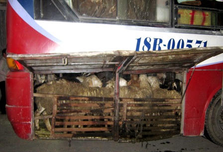 (PLO) - Một xe khách "làm chuồng" để chở 12 con cừu, 13 con dê và hàng trăm thùng hàng khác, mùi hôi thối đứng ở xa cả chục mét vẫn ngửi được, nhưng lại dễ dàng đi "lọt" qua rất nhiều tỉnh thành.