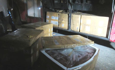 Qua kiểm tra cho thấy, xe này vận chuyển 100 thùng hàng hoa quả, 4 thùng xốp chứa cá thu, 30 thùng xốp chứa cá khoai và đều được bọc bằng bao ni-lon, băng dán kín bên ngoài.