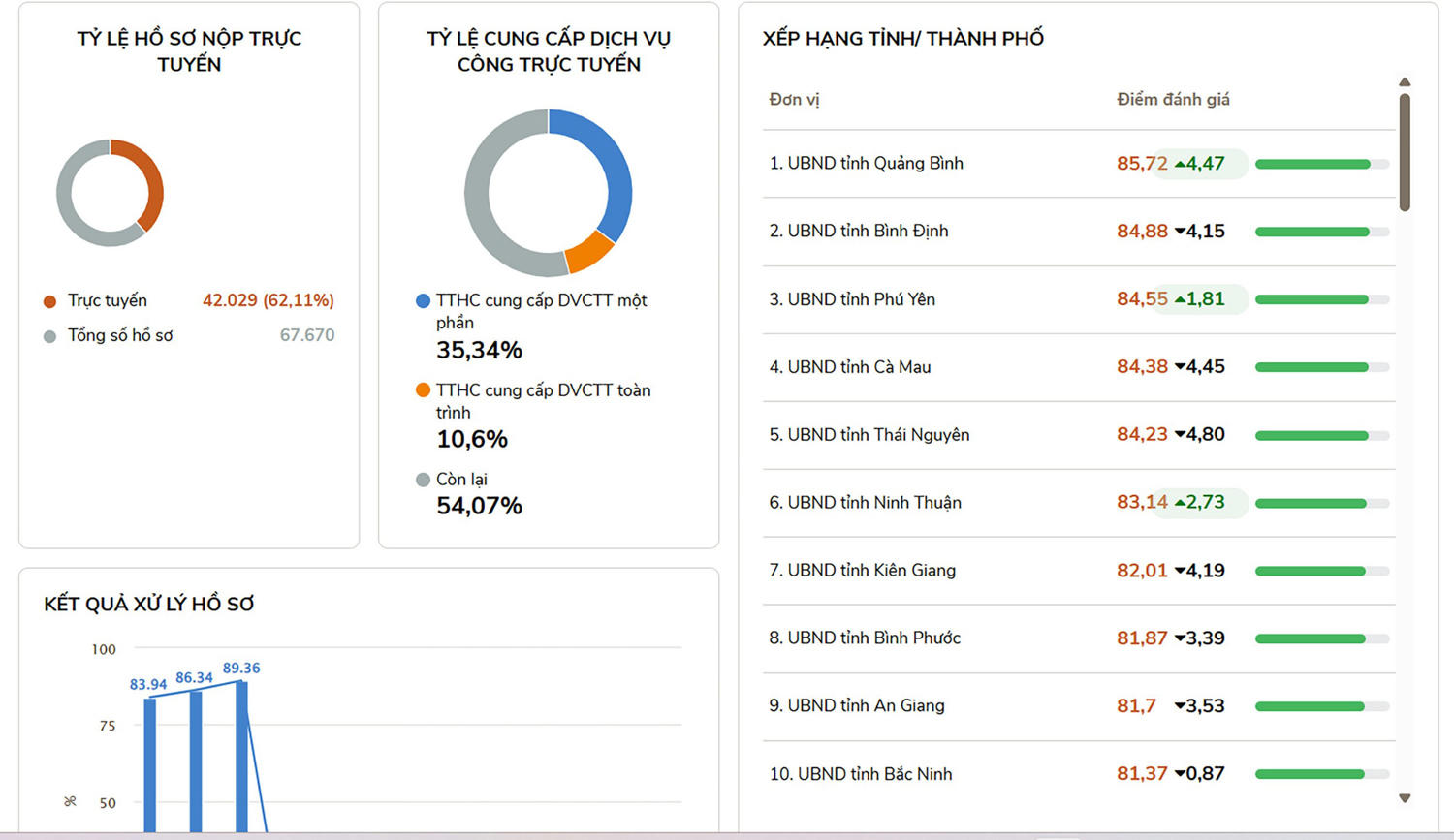 Bảng xếp hạng tỉnh/thành phố của Bộ chỉ số chỉ đạo, điều hành và phục vụ người dân, doanh nghiệp trên Cổng dịch vụ công Quốc gia. |