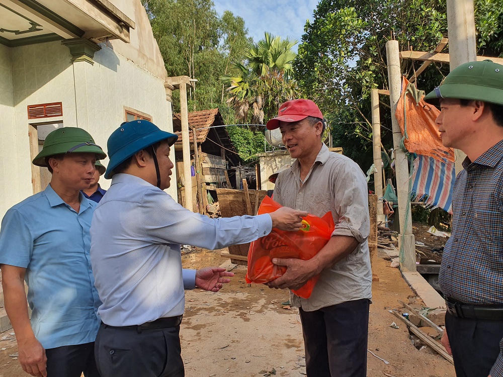 Bí thư Tỉnh ủy Quảng Bình tặng quà cho người dân xã Thạch Hóa bị ảnh hưởng bởi mưa, lũ (tháng 10/2020). |