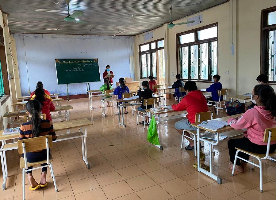 Với phương châm "tạm dừng đến trường không dừng việc học", Phòng GD&ĐT đã tham mưu đề xuất UBND huyện Tuyên Hóa mở lớp học đặc biệt thứ 2 trong khu cách ly tập trung để tổ chức dạy học trực tiếp cho 26 học sinh lớp 5B học tại Hội trường của khu cách ly (chia thành 02 lớp buổi sáng và buổi chiều) vừa đảm bảo giản cách theo đúng quy định phòng chống dịch.