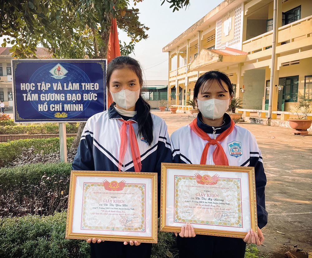 Tại buổi tuyên dương, anh Đinh Trung Hiếu, Phó Bí thư Tỉnh Đoàn, Chủ tịch Hội đồng Đội tỉnh đã trao Giấy khen cho hai em Võ Thị Mỹ Nương và Võ Thị Yến Nhi (cùng SN 2008, học sinh lớp 9/1 Trường THCS An Ninh), đặc biệt ghi nhận và biểu dương hành động đẹp của hai em. Đồng thời mong muốn trong thời gian tới, các em phát huy các kết quả đã đạt được, tiếp tục học tập tốt, rèn luyện, xứng đáng là con ngoan trò giỏi, cháu ngoan Bác Hồ.