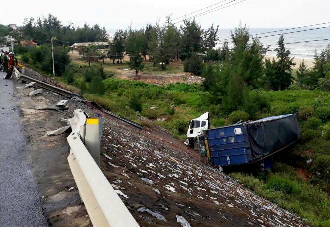 Khoảng 9h sáng 14/9, trên QL 1A đoạn phía Nam đèo Lý Hòa, huyện Bố Trạch, tỉnh Quảng Bình, xe đầu kéo (chưa rõ BKS) kéo theo container BKS 60R -008.15 lưu hành hướng Nam - Bắc, đang đổ dốc thì bất ngờ tông vào dải lan can, lao xuống vực sâu.