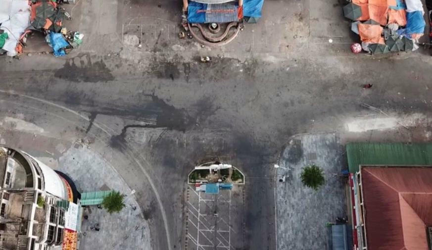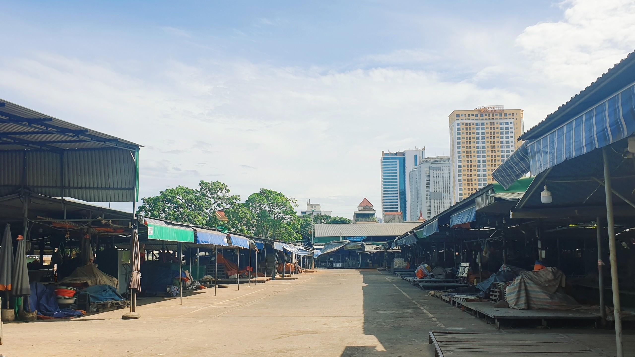 Chợ đầu mối nhìn từ trên cao xuống không một bóng người |