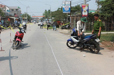 Tại hiện trường, các nhóm đối tượng đã bỏ trốn, chỉ còn lại 2 chiếc xe máy mang BKS 43D1-144.14 và 92D1-210.22, 2 con dao tự chế dài, một đôi dép, vũng máu đã khô.