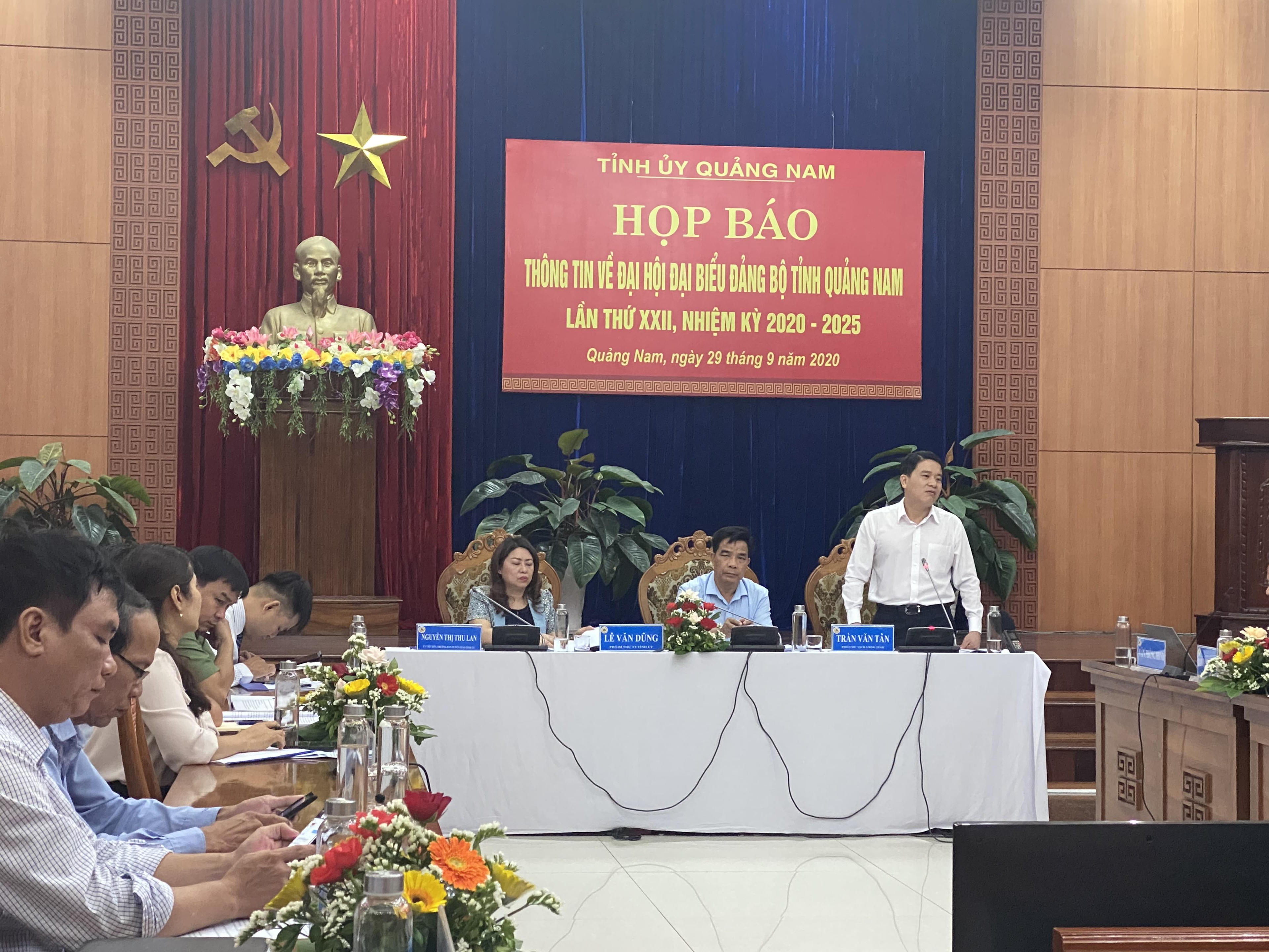 (PLVN) - Chiều 29/9, Tỉnh ủy Quảng Nam, Ban Tuyên giáo Tỉnh ủy đã tổ chức hop báo giới thiệu Đại hội đại biểu Đảng bộ tỉnh Quảng Nam lần thứ XXII, nhiệm kỳ 2020- 2025, sẽ diễn ra từ ngày 11-13/10.