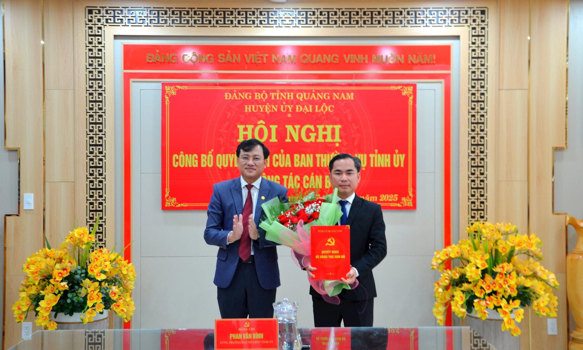 Công bố quyết định điều động ông Lê Văn Quang, Phó Bí thư Huyện ủy, Chủ tịch UBND huyện Đại Lộc đến nhận công tác tại Thị ủy Điện Bàn, chỉ định tham gia Ban Chấp hành Đảng bộ, Ban Thường vụ Thị ủy Điện Bàn và giữ chức Phó Bí thư Thị ủy Điện Bàn nhiệm kỳ 2020 – 2025, kể từ ngày 3/3/2025.