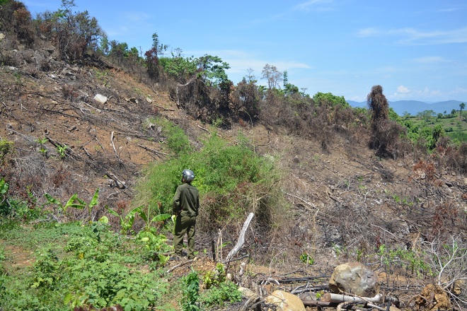 Biết nhóm phóng viên đến tìm hiểu về nạn phá rừng phòng hộ, một số người dân đã nhiệt tình dẫn chúng tôi đến khoảnh rừng bị tàn phá để tận mục sở thị.