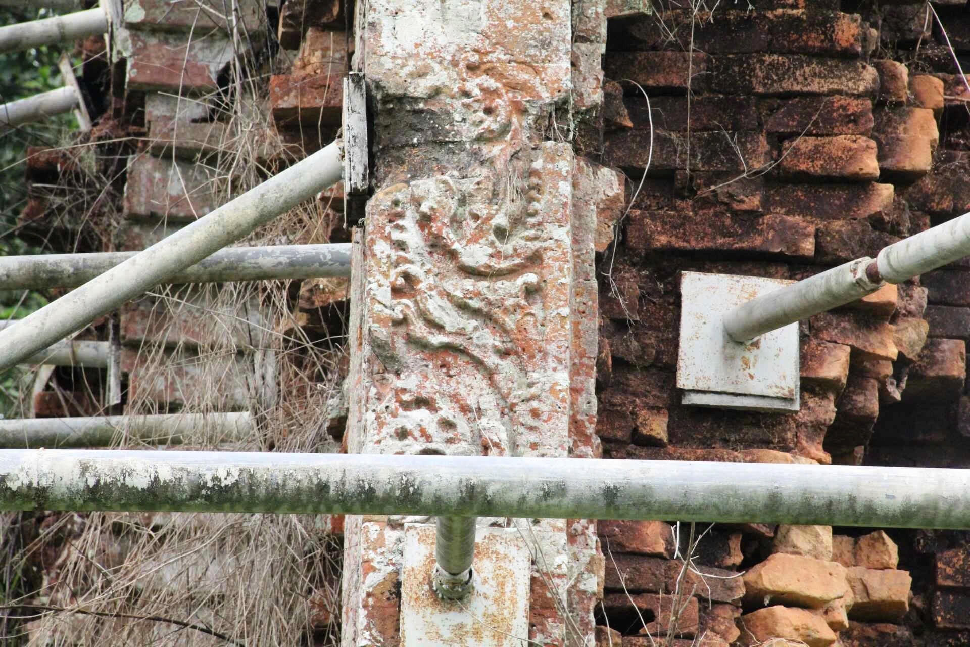 Di tích quốc gia đặc biệt Phật viện Đồng Dương hiện chỉ còn tháp Sáng đang được chống đỡ, tránh đổ sập. (Ảnh trong bài: Công Huy) |