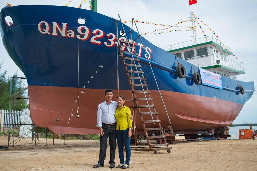 Tàu vỏ thép của ngư dân Lâu và Tuyến hành nghề lưới rê. Sau khi hạ thủy, đôi tàu tiếp tục được đội ngũ kỹ sư của công ty hoàn thiện để chính thức đưa vào hoạt động khai thác hải sản dài ngày trên biển trong tháng 7/2017.