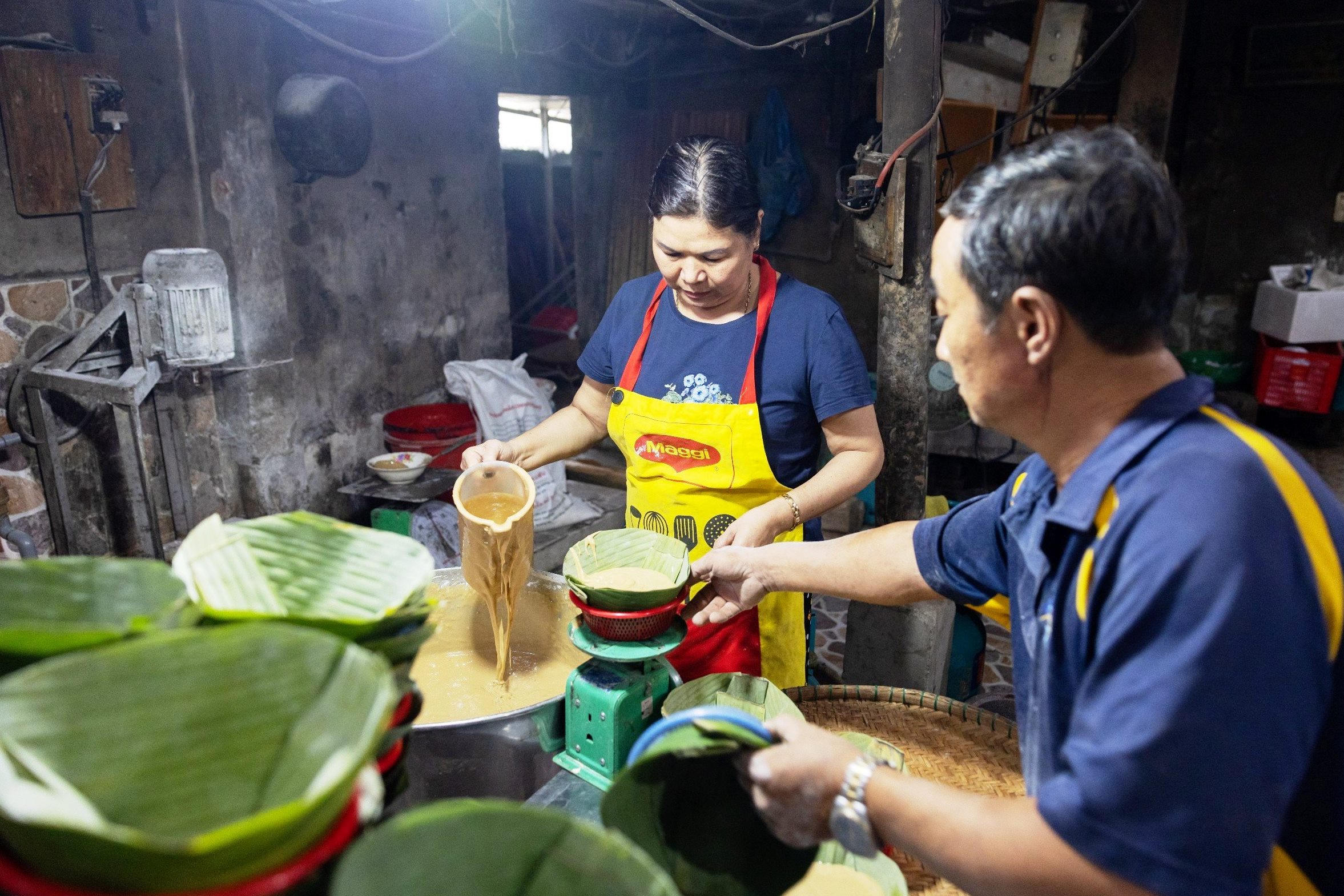 Tại nhà ông Lê Phước Trực (54 tuổi, khu Nghĩa Hiệp), 6 chiếc lò bánh tổ đều trong tình trạng đỏ lửa suốt ngày đêm. Ông Trực, bắt đầu từ khoảng 20 tháng Chạp đến tận chiều 30 Tết, nhu cầu mua bánh tổ tăng chóng mặt, đơn hàng cũng dồn dập nên ông phải huy động hết gia đình và kêu thêm một số người mới có thể làm kịp đơn.