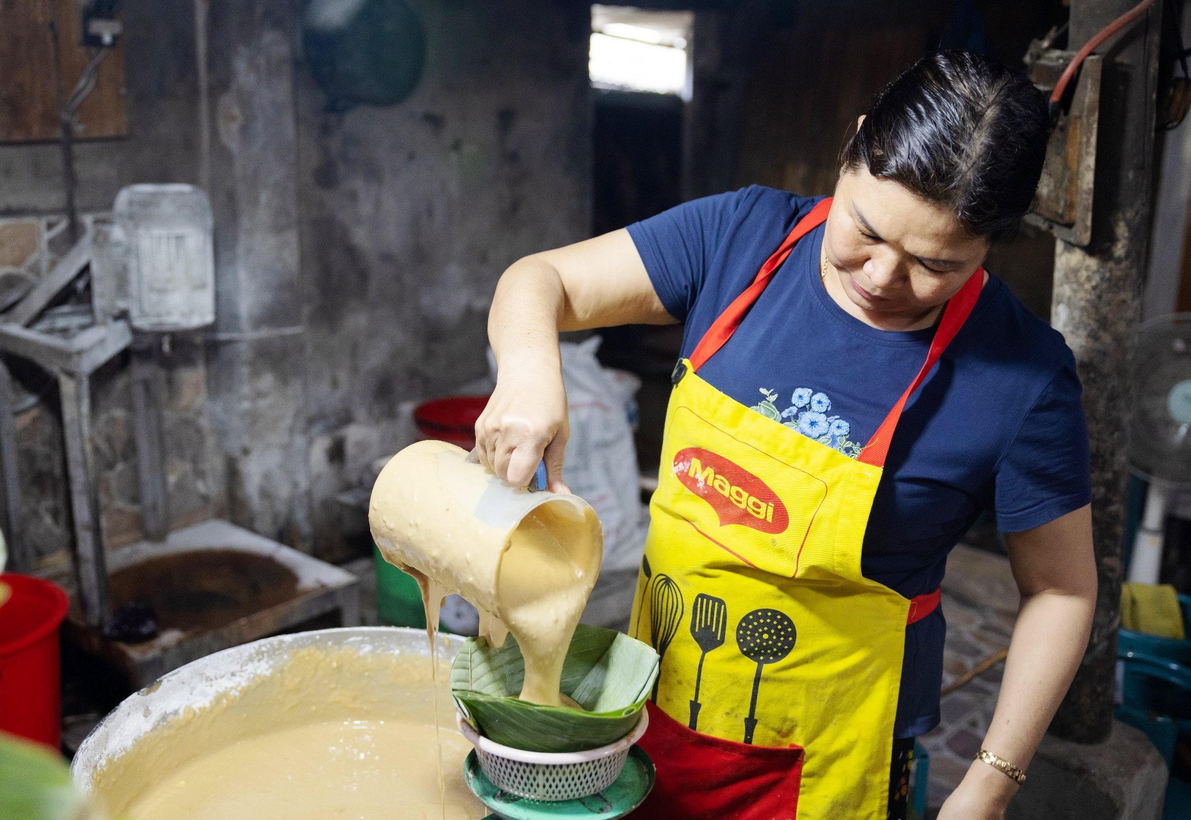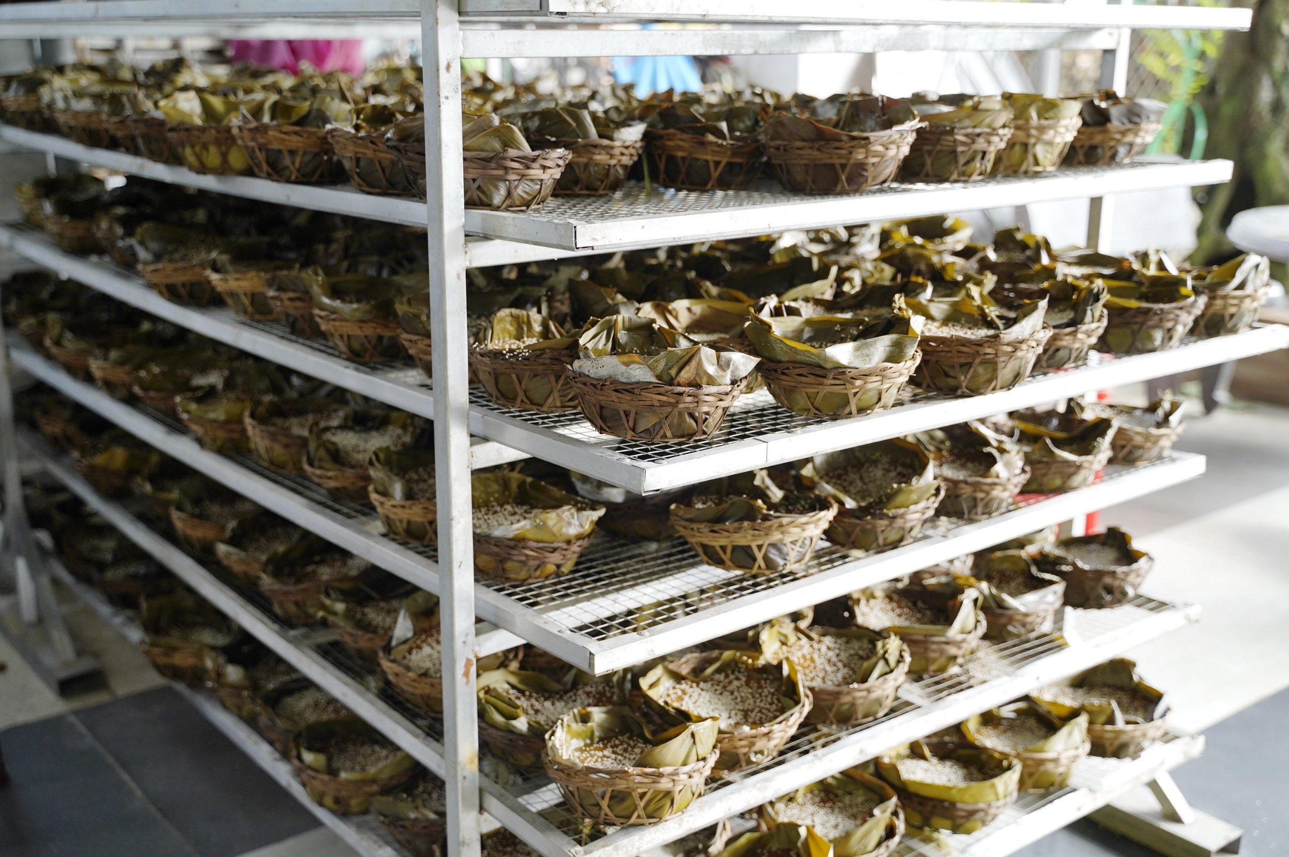 “Người ta hay ví von chiếc bánh tổ nhìn như một tổ chim, vì bánh được đổ trong khuôn tre đan hình tròn, bên trong lót 2 lớp lá chuối. Khi hấp bánh thì lá chuối tươi chuyển sang màu xanh đen, giúp bánh tổ có hương thơm nhẹ nhàng. Đồng thời khi hấp bánh phải luôn giữ lửa to, đỏ đều để bánh tổ chín tới, không bị sượng”, ông Trực chia sẻ.