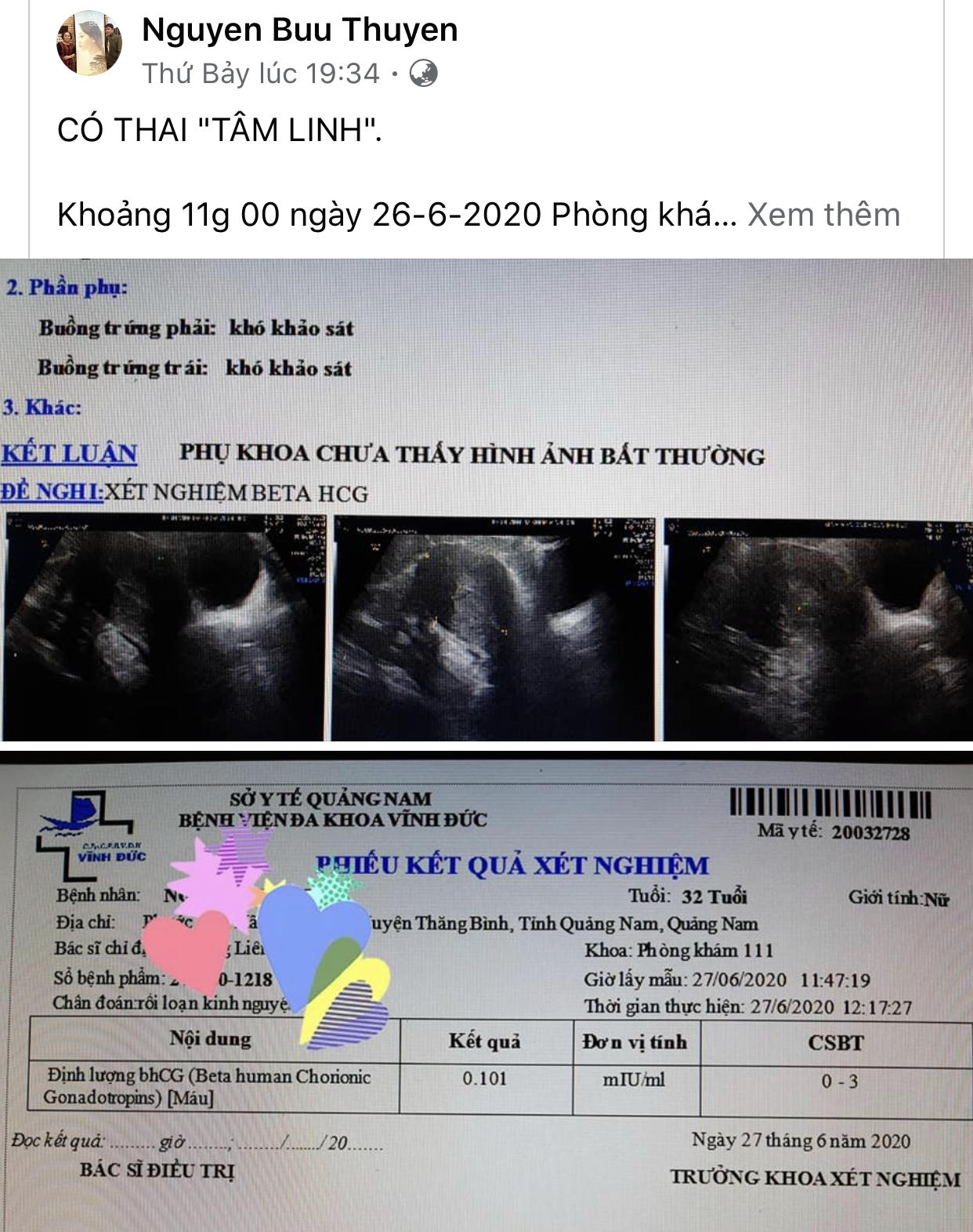 Trước đó, trên trang cái nhân, BS Nguyễn Bửu Thuyên, Trưởng khoa Sản BV đa khoa Vĩnh Đức phản ánh, khoảng 11 giờ ngày 26/6 chị N.T.D (32 tuổi, ngụ xã Bình Minh, huyện Thăng Bình, Quảng Nam) cùng người nhà chuẩn bị đầy đầy đủ quần áo, tã em bé… đến BV làm thủ tục nhập viện để sinh. Lúc nhập viện, bụng chị D. khá to, đi đứng khệ nệ. Các BS và nữ hộ sinh khẩn trương làm thủ tục cho chị.