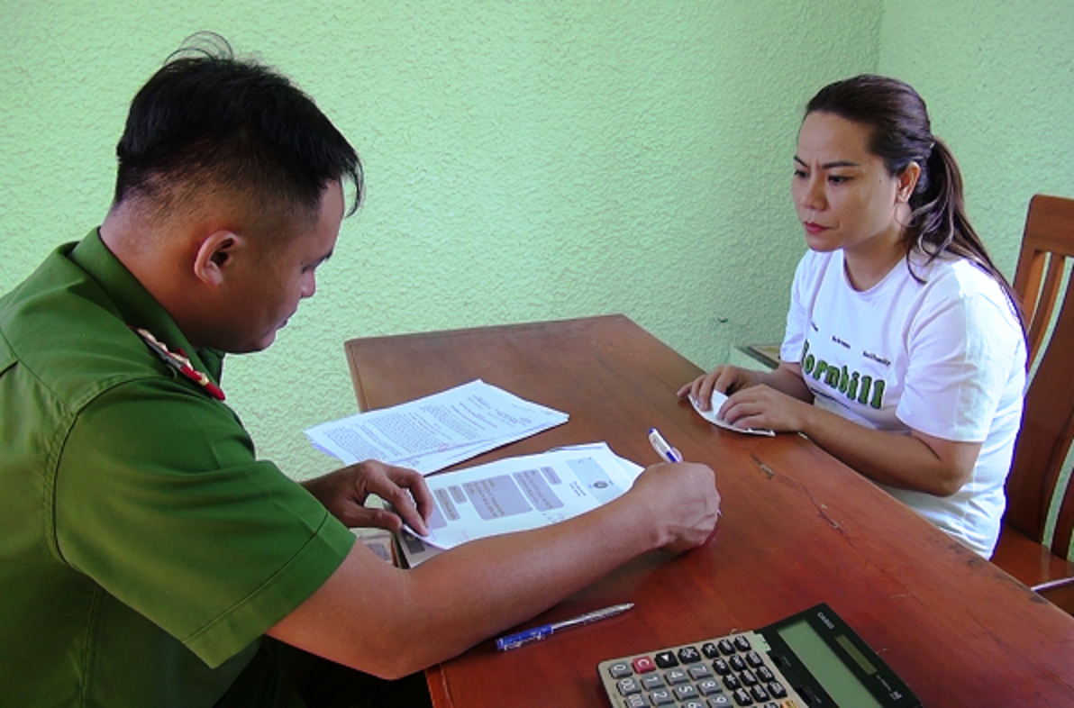 Lực lượng chức năng tỉnh Quảng Nam làm việc với các bị can liên quan. |