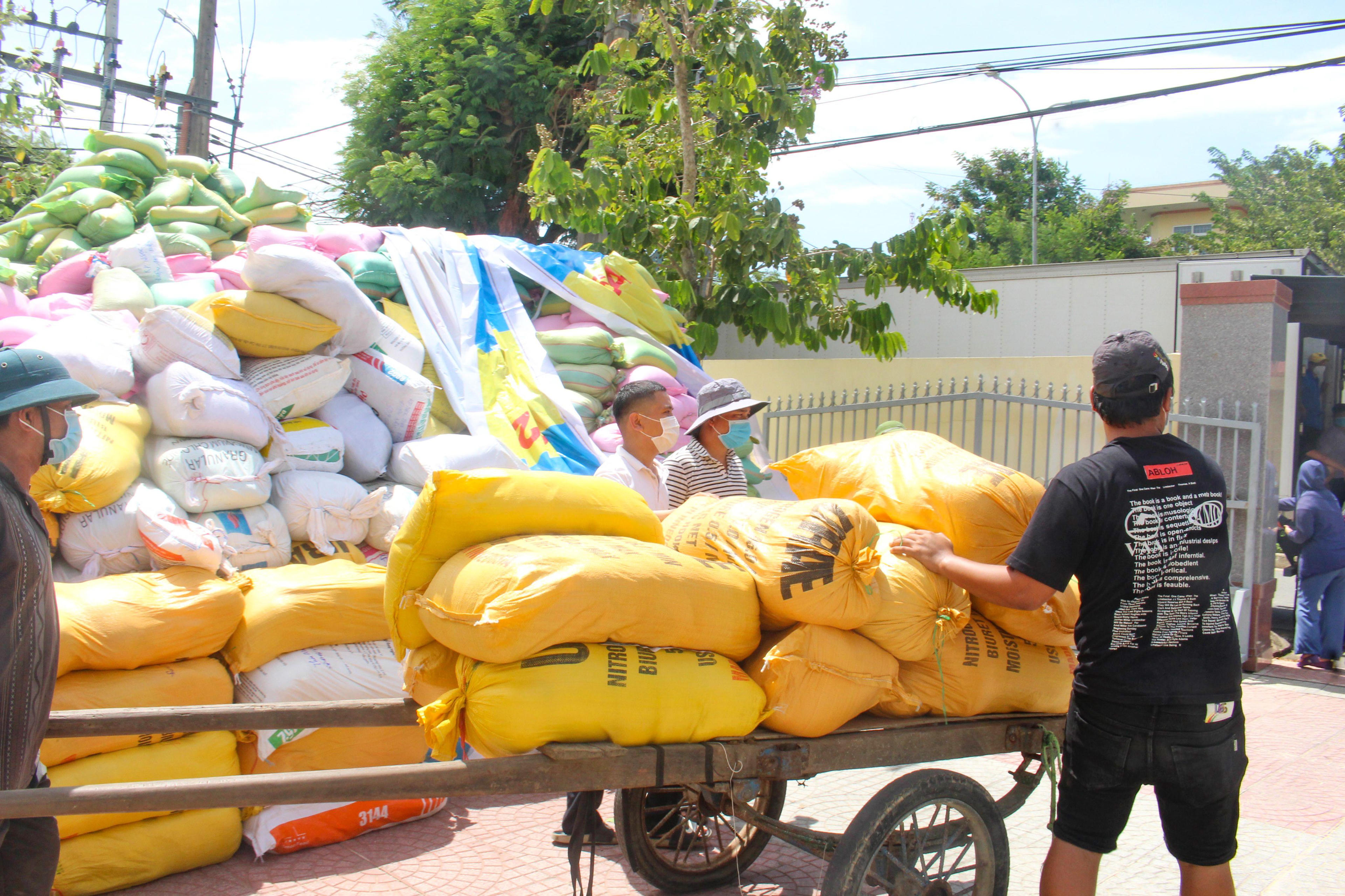 Người dân đem các loại nông sản đến ủng hộ cho bà con TP HCM. |