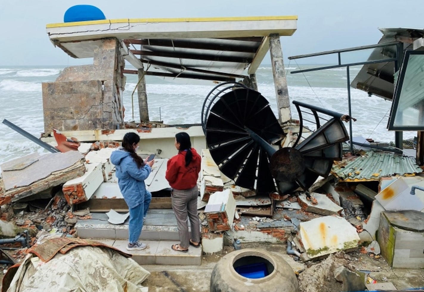Nhiều ngôi nhà, dãy nhà hàng bị đánh sập do sạt lở bờ biển Hội An. |