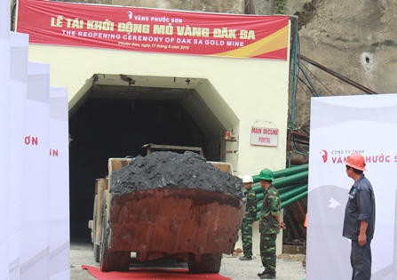 (PLO) - Ngày 17/8, tại mỏ Đăk Sa (xã Phước Đức, huyện Phước Sơn, tỉnh Quảng Nam), Công ty TNHH Vàng Phước Sơn đã tiến hành lễ tái khởi động hoạt động khai thác vàng, chính thức đưa Mỏ vàng Đăk Sa quay lại sau hơn hai năm tạm dừng sản xuất.