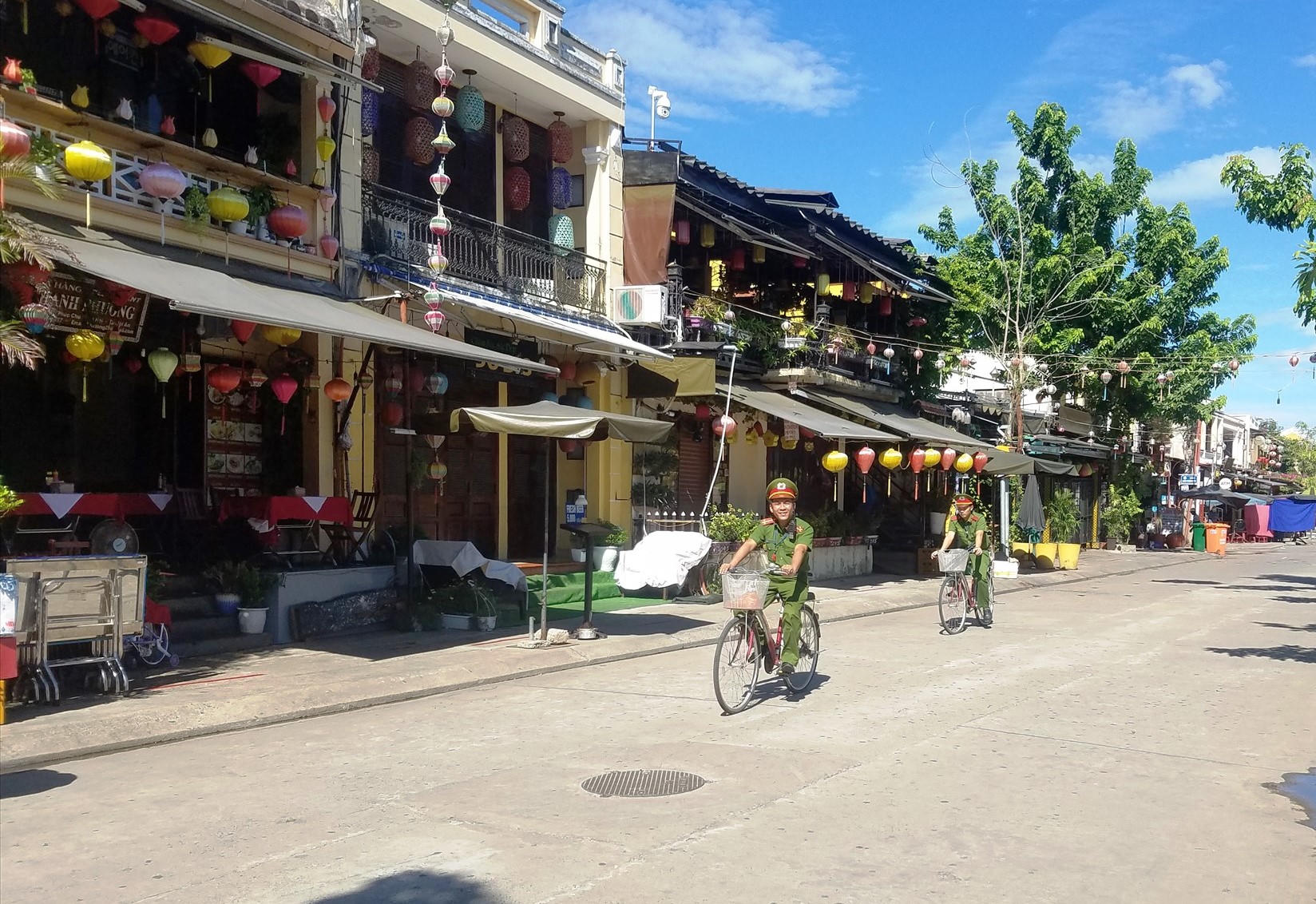 Công an TP.Hội An tuần tra bằng xe đạp trong Khu phố cổ Hội An. |