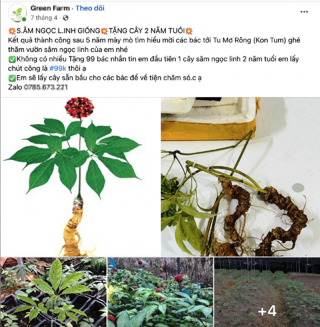 Sâm Ngọc Linh chưa kiểm định chất lượng được rao bán tràn lan trên mạng xã hội. |