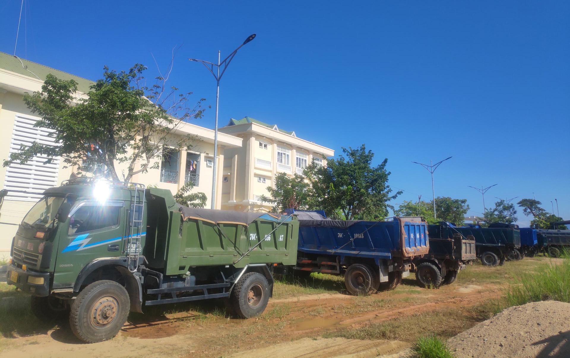Công an huyện Sơn Tịnh (Quảng Ngãi) tạm giữ nhiều phương tiện chở cát trái phép đi tiêu thụ. |