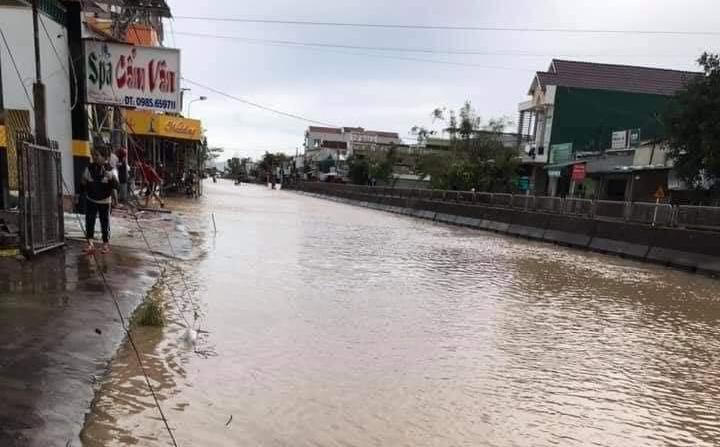 Tuyến đường Quốc lộ 1A đi qua địa bàn TX. Đức Phổ cũng bị ngập nước. |