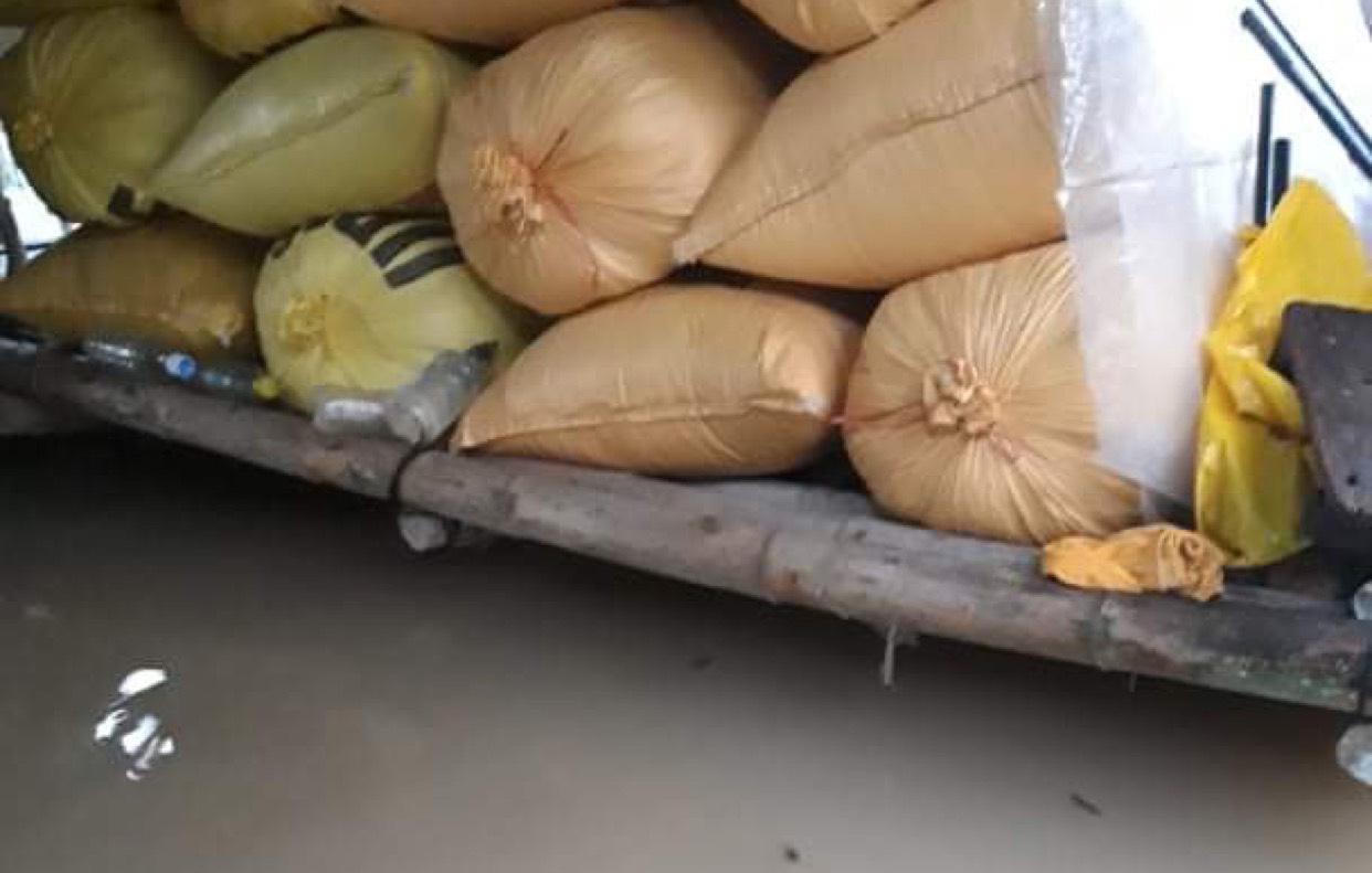 Một số hộ dân đã kịp vận chuyển lúa, vật dụng trong nhà lên cao để không bị nước lũ làm hư hỏng. |