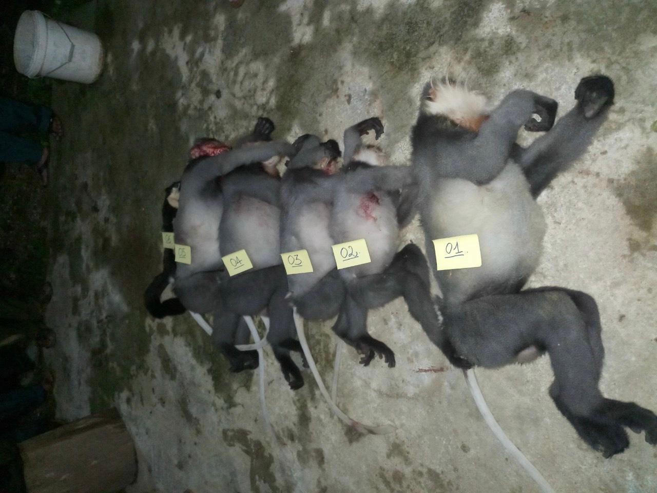5 cá thể voọc chà vá chân xám và 01 con sóc bay bị bắn chết. |