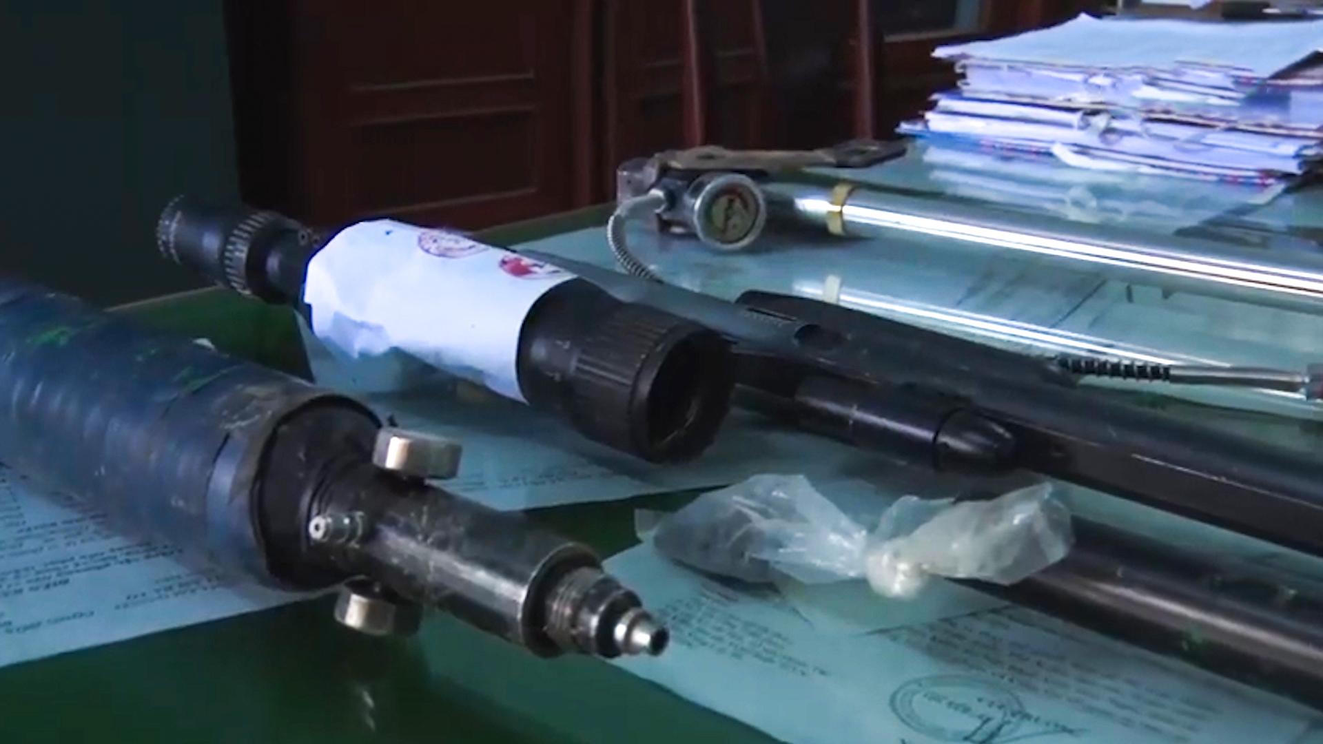 Phát hiện lực lượng kiểm tra, 02 đối tượng bỏ chạy vào rừng để lại xe gắn máy (BKS 76L1-01480) và 01 ba lô màu xanh, rằn ri ở bên trong có 02 cá thể động vật (nghi là voọc chà vá chân xám); 01 bao tải màu cam bên trong có 03 cá thể động vật (nghi là voọc chà vá chân xám), 01 con sóc bay, 01 bình hơi (dùng để nạp hơi cho súng hơi tự chế), 53 viên đạn chì, 01 ống giảm thanh và điều khiển một xe gắn máy khác chạy trốn khỏi hiện trường.