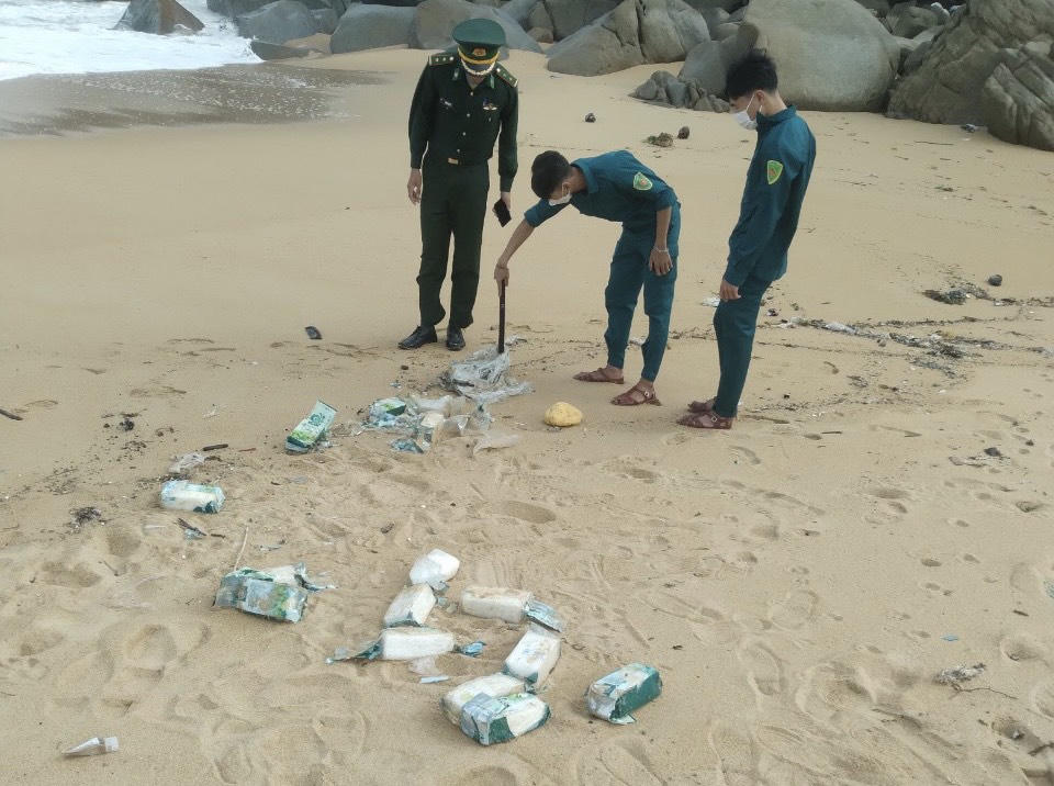 Khoảng 13h ngày 5/12, Đồn biên phòng Sa Huỳnh nhận tin trình báo của người dân trú ở thôn Vĩnh Tuy (xã Phổ Châu) về việc phát hiện 1 bao tải chứa chất lạ trôi dạt vào bờ biển địa phương.
