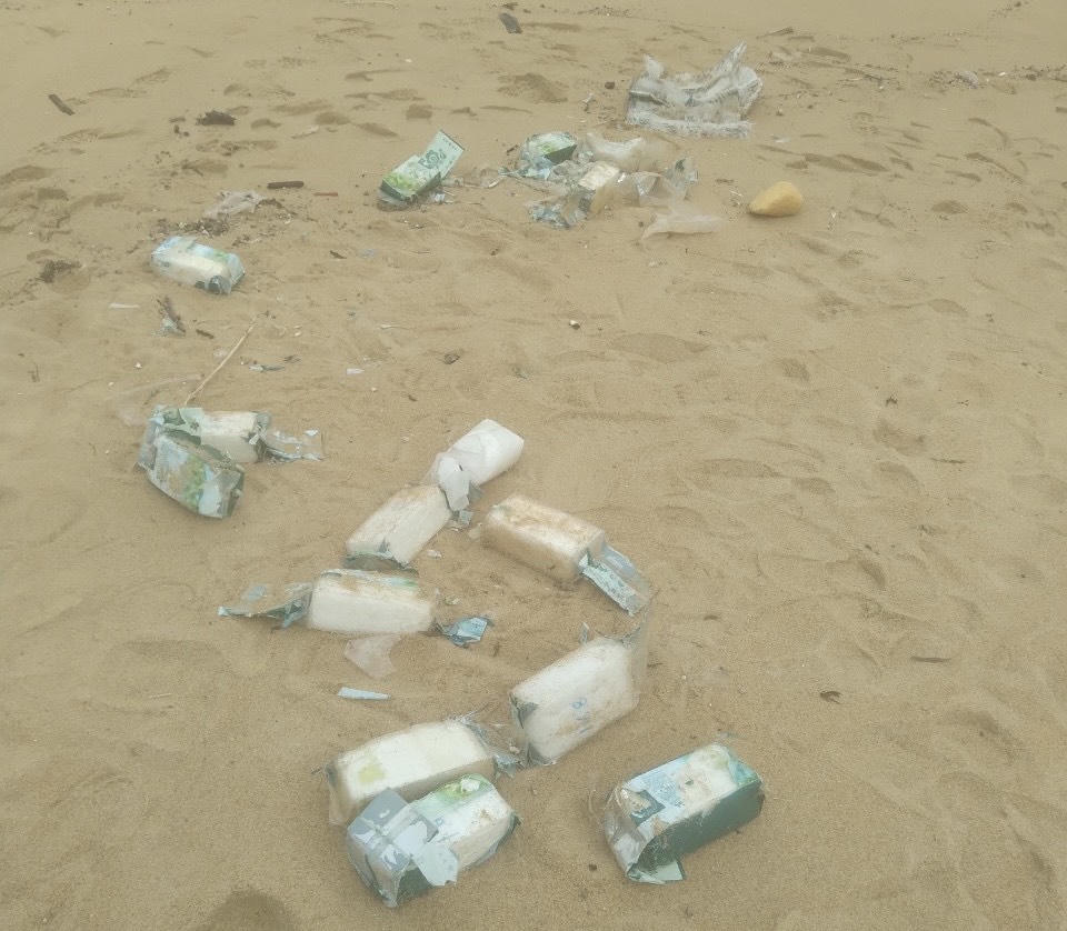 Rất nhiều gói có chứa chất lạ trôi vào bờ biển. |