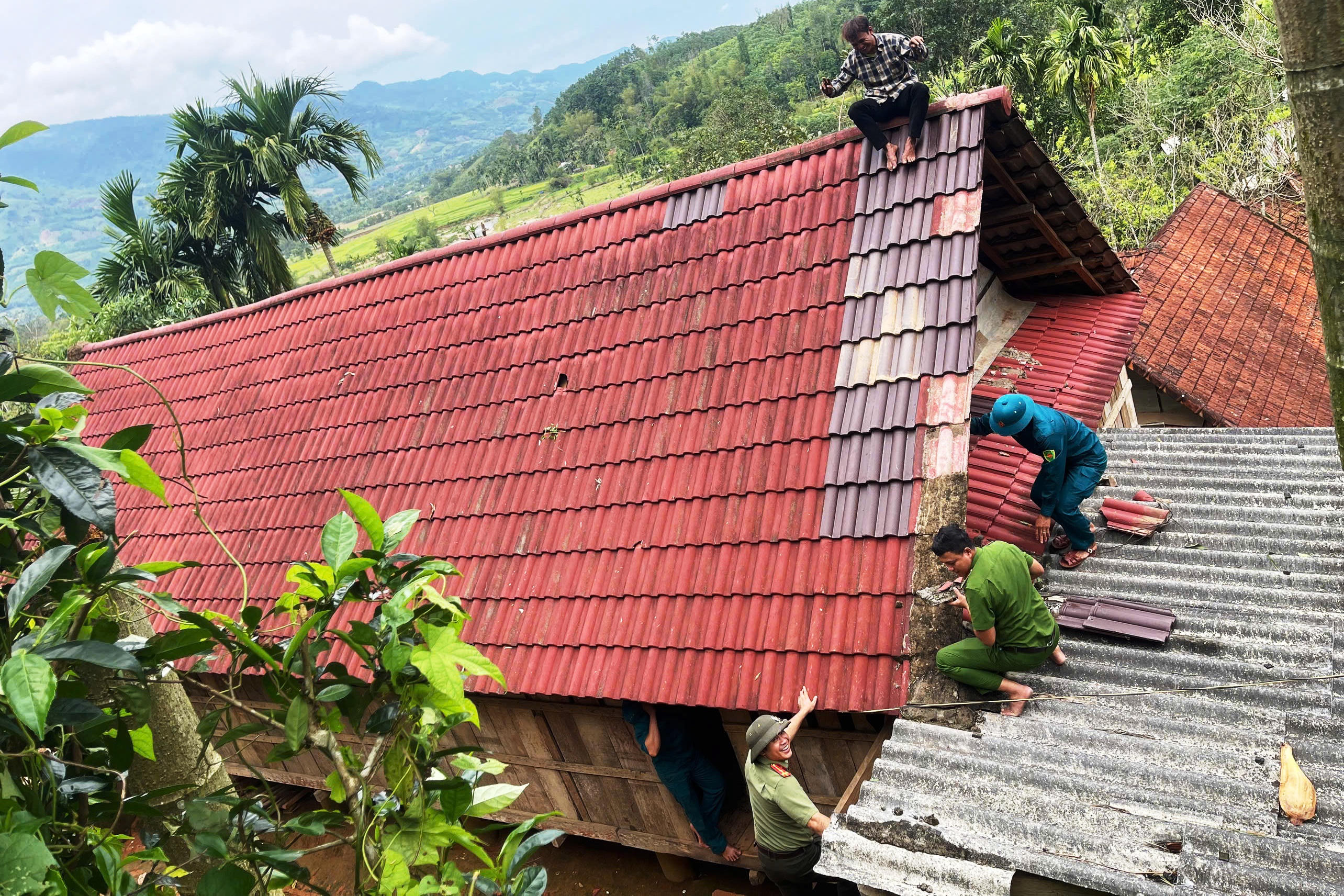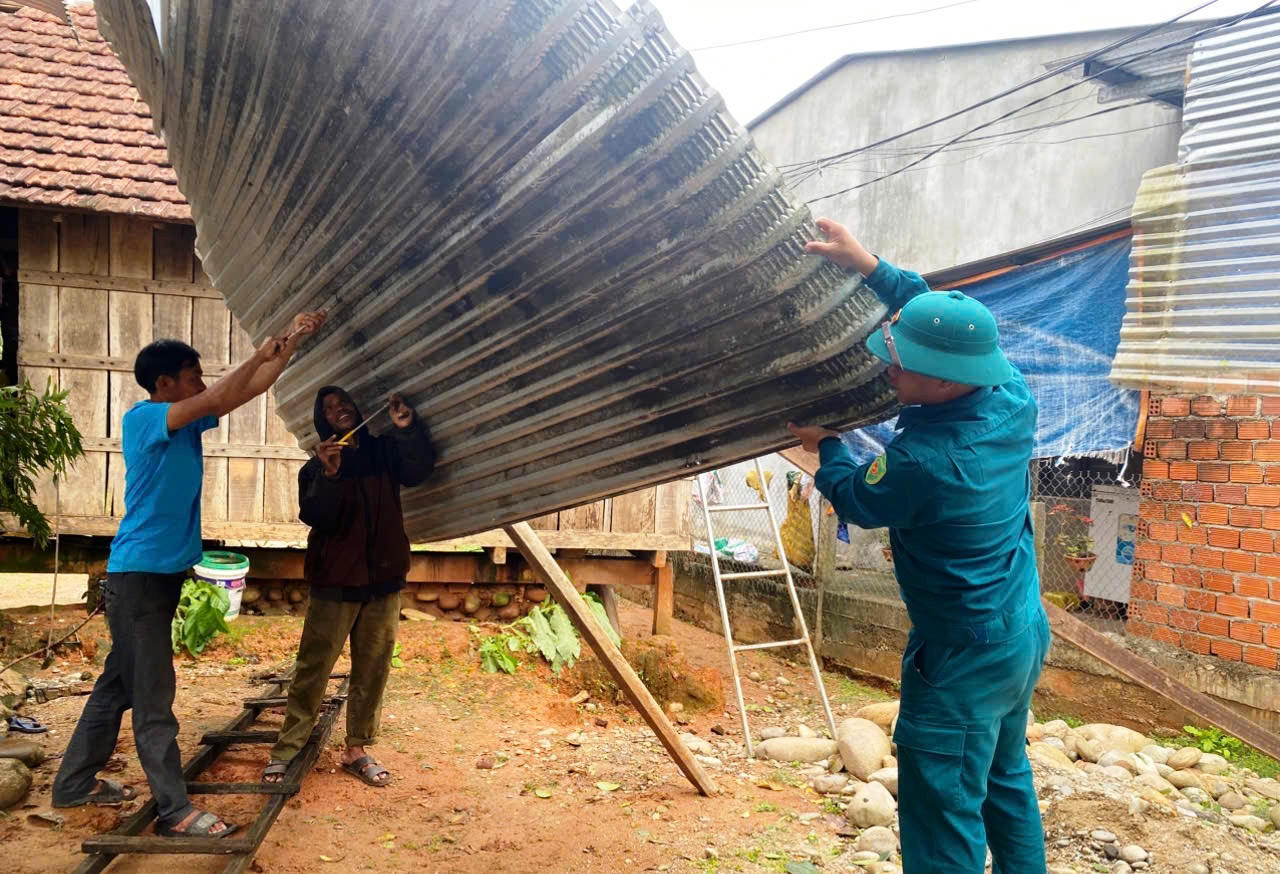 Tại các khu dân cư bị ảnh hưởng, hàng chục cán bộ, chiến sĩ và tình nguyện viên đã giúp người dân lợp lại mái tôn bị tốc, gia cố những phần nhà hư hỏng, thu dọn cây xanh gãy đổ và dọn dẹp khu vực xung quanh nhà ở để bảo đảm an toàn. Không khí khắc phục hậu quả diễn ra khẩn trương với sự chung tay của các lực lượng và người dân địa phương.