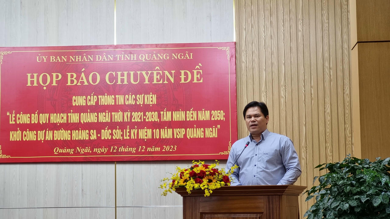 (PLVN) - Chiều 12/12, UBND tỉnh Quảng Ngãi thông tin về Lễ Công bố Quy hoạch tỉnh Quảng Ngãi thời kỳ 2021-2030, tầm nhìn đến năm 2050; Khởi công dự án đường Hoàng Sa - Dốc Sỏi; Lễ kỷ niệm 10 năm VSIP Quảng Ngãi diễn ra trong tháng 12.