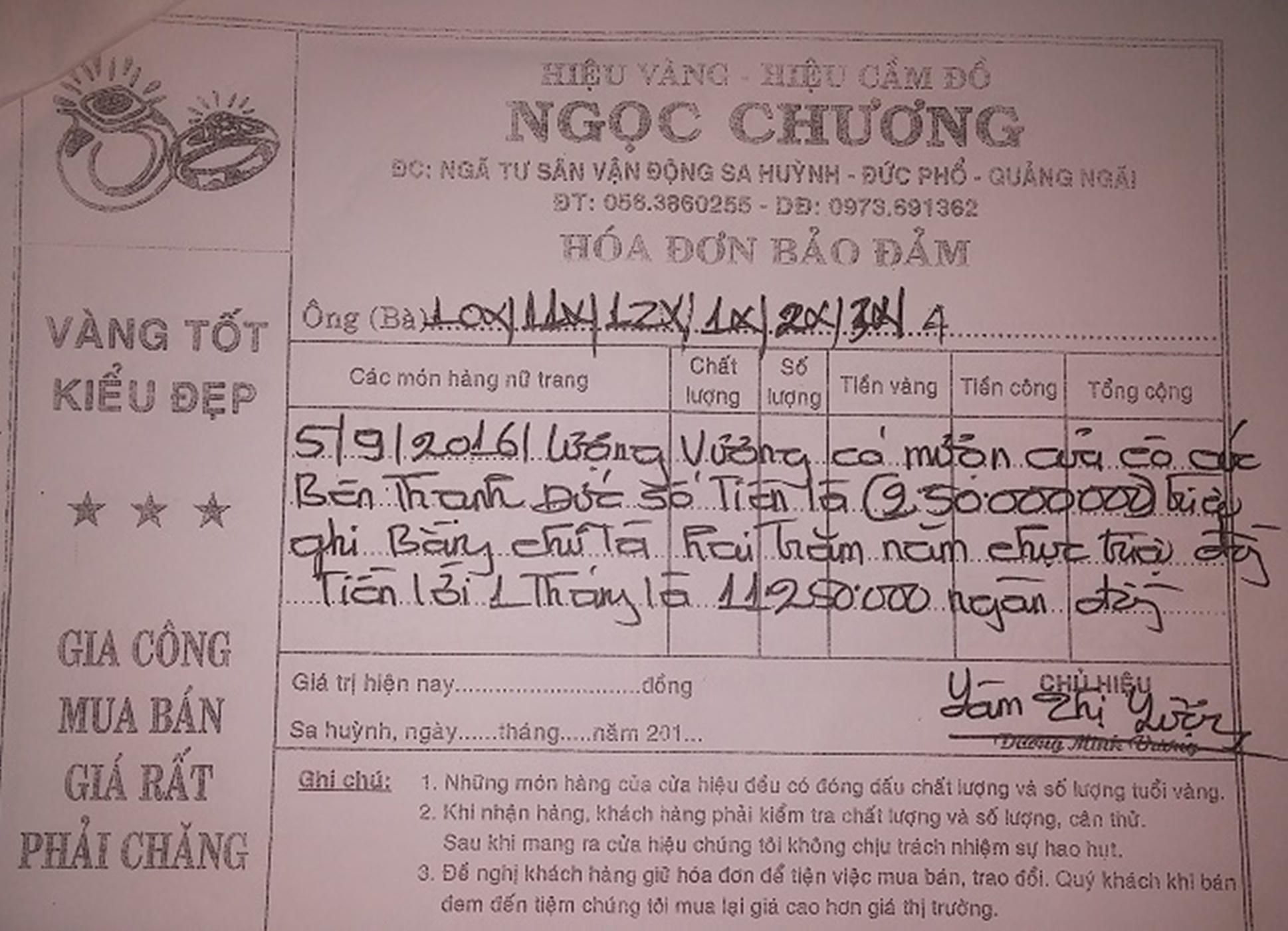 “Tôi đưa cho vợ chồng chủ tiệm vàng Ngọc Chương 400 triệu đồng, ban đầu họ trả vốn và lãi sòng phẳng. Đến lúc mình tin tưởng, vợ chồng họ năn nỉ quá, nói đúng 1 tuần sẽ trả đầy đủ gốc và lãi, vậy là tôi dốc sức cho họ vay 700 triệu đồng, hông ngờ họ lại bỏ trốn luôn”, bà Vy bức xúc nói.