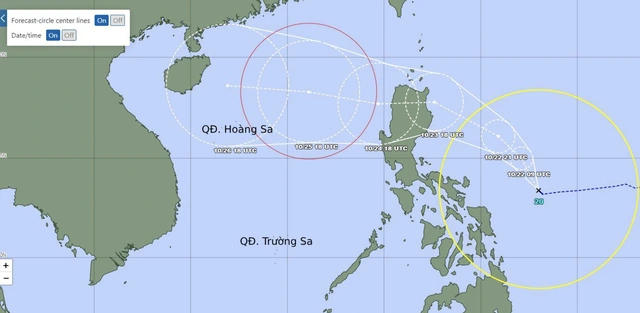 Theo Trung tâm Dự báo khí tượng thủy văn Quốc gia, áp thấp nhiệt đới đang hoạt động trên khu vực phía Đông Philippines dự báo sẽ mạnh lên thành bão, khoảng ngày 25/10 khả năng di chuyển vào biển Đông. Từ chiều và đêm 24/10, vùng biển phía Đông của khu vực Bắc Biển Đông (phía Đông kinh tuyến 118,5 độ Kinh Đông) có gió mạnh dần lên cấp 8, vùng gần tâm bão mạnh cấp 9-10, giật cấp 12.