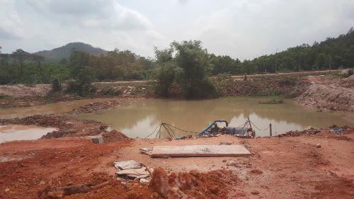 Điều đáng nói là trong quá trình thực hiện dự án khi phát lộ sét, ông Nguyễn Đức Nội đã không báo cáo chính quyền địa phương mà tự ý khai thác sét với khối lượng 13.65m3/ngày, thời gian khai thác sét kéo dài 31 ngày. Hành vi trên của ông Nội đã bị phạt hành chính với số tiền lên đến 31 triệu đồng và buộc phải khôi phục lại hiện trạng của đất, thực hiện cải tạo môi trường khu vực đã khai thác. Tuy nhiên, theo ghi nhận của phóng viên ngày 9/5 chủ dự án trên không những tích cực thực hiện biện pháp cải tạo môi trường mà tại đó hiện trường khai thác đất đai ngổn ngang, nham nhở, nhiều thùng vũng sâu, thậm chí hệ thống máy xúc đất, xe tải và hệ thống sàng rửa, máy bơm nước vẫn đang trong tư thế “sẵn sàng” vào việc.