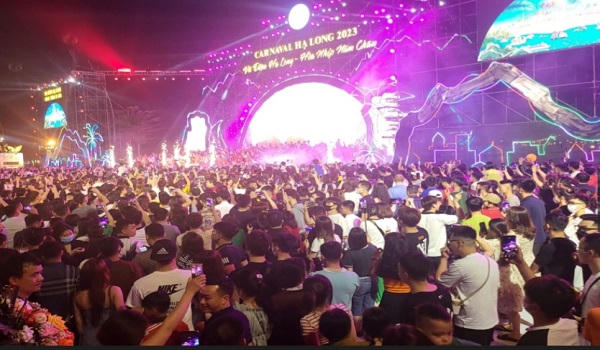 Du khách chen chân tại Carnaval Hạ Long 2023. |