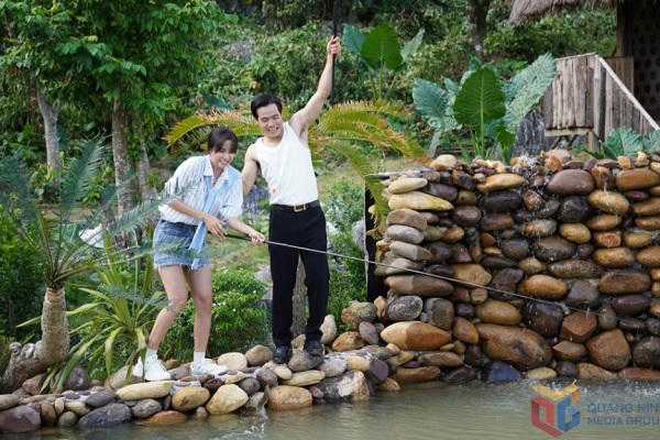 ![]() Hai diễn viên chính của bộ phim là Quốc Toàn (vai Thanh Sơn) và Anh Đào (vai Thuỳ Dương) trong một cảnh quay ở xã Thống Nhất (TP Hạ Long). (ảnh TTTT Quảng Ninh) |