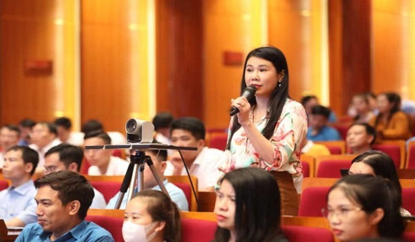![]() Đại diện công nhân, viên chức, lao động, đặt câu hỏi, tham gia ý kiến đối thoại với các đồng chí lãnh đạo tỉnh. |