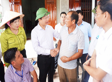 Phó Chủ tịch UBND tỉnh Cao Tường Huy, trò chuyện, nắm tâm tư của hộ dân thôn Đồng Tâm, xã Dực Yên, huyện Đầm Hà, thực hiện công tác bàn giao mặt bằng.