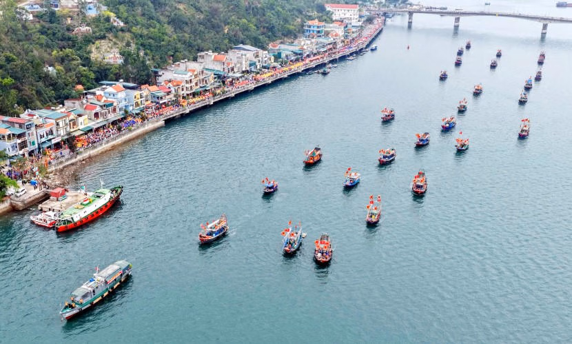 Trong đó, đoàn rước trên biển với khoảng 30 thuyền, tái hiện hình ảnh Đức Ông vi hành tuần tra biển đảo, trấn giữ biên thùy, cầu cho mưa thuận gió hòa, quốc thái dân an. Lễ rước năm nay có quy mô lớn nhất từ trước đến nay với 40 đoàn rước và khoảng 2.500 người tham gia.