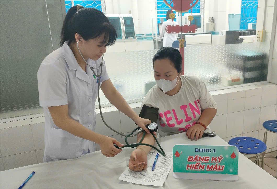 Tại bàn đăng ký, người hiến máu được khám kiểm tra sức khỏe nghiêm ngặt theo quy định. |